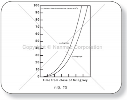 Using this thermocouple design, the Naval Propellant plant characterized squibs based on the temperature and heat flux data. The squibs from small rockets (2.75 rockets) produced a maximum of 900°F flame temperatures in less than 174 sec. (250 ms). Subsequently a number of fully assembled igniters were fired (Ref. 2) using a full-sized dummy rocket with a wood grain simulated propellant charge to observe the temperature distribution pattern in the rocket.