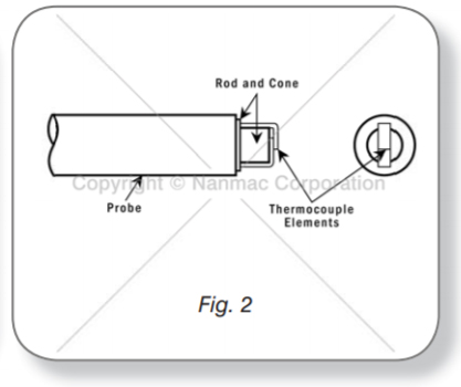 The additive effects of these errors can easily create an overall error of 90° F or more in shallow depth applications of conventional bayonet-type thermocouples. Clearly, then, a more precise temperature sensor is needed, particularly in applications where the pocket depth is 1/2 in. or less.