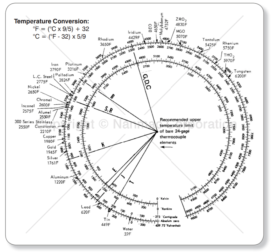 Useful Range of Thermocouples -458°F to 4,800°F